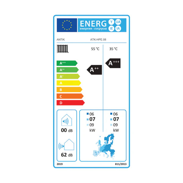 Tepelné čerpadlo ANTIK Monoblok 8kW ECO dosahuje vysokou energetickou efektivitu s třídou A+++ při teplotě vody 35 °C a A++ při teplotě 55 °C , čímž zajišťuje úsporný provoz.