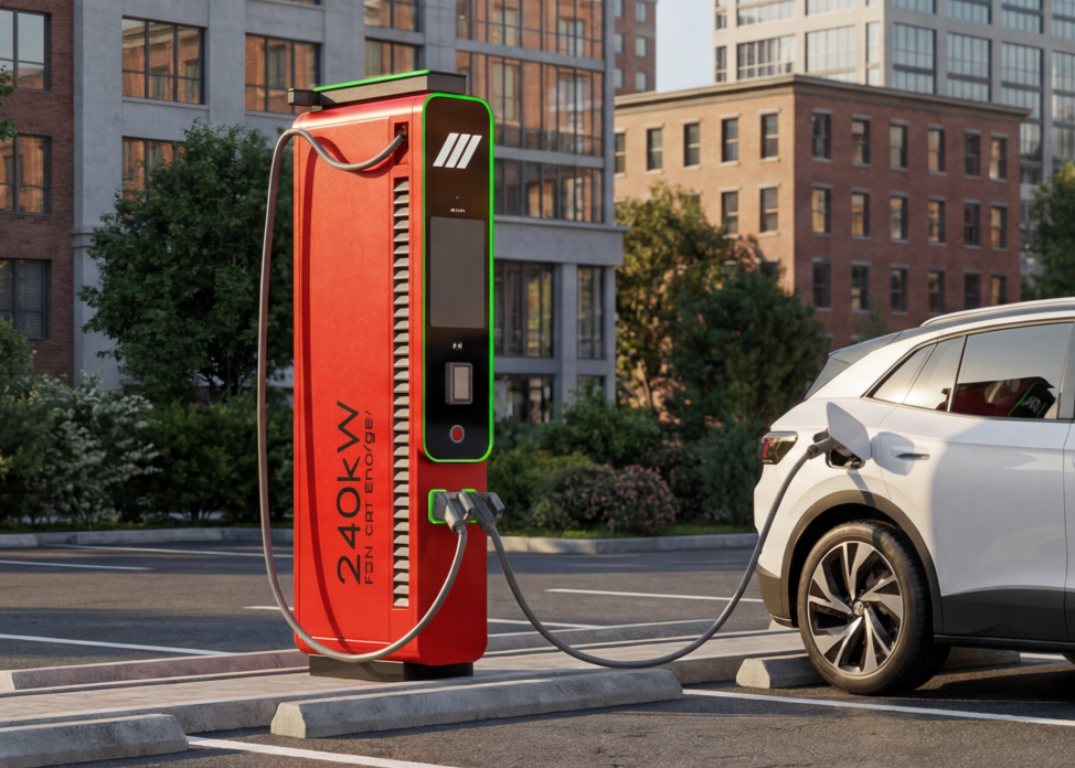 Nabíječka poskytuje maximální výkon 240 kW s podporou dynamické konfigurace výstupů. Umožňuje paralelní nabíjení dvou vozů s výkonem až 120 kW na každý výstup. Pracuje v širokém napěťovém rozsahu 150–1000 V DC, což zaručuje kompatibilitu s moderními EV platformami. Maximální výstupní proud 300 A umožňuje stabilní a efektivní přenos energie.