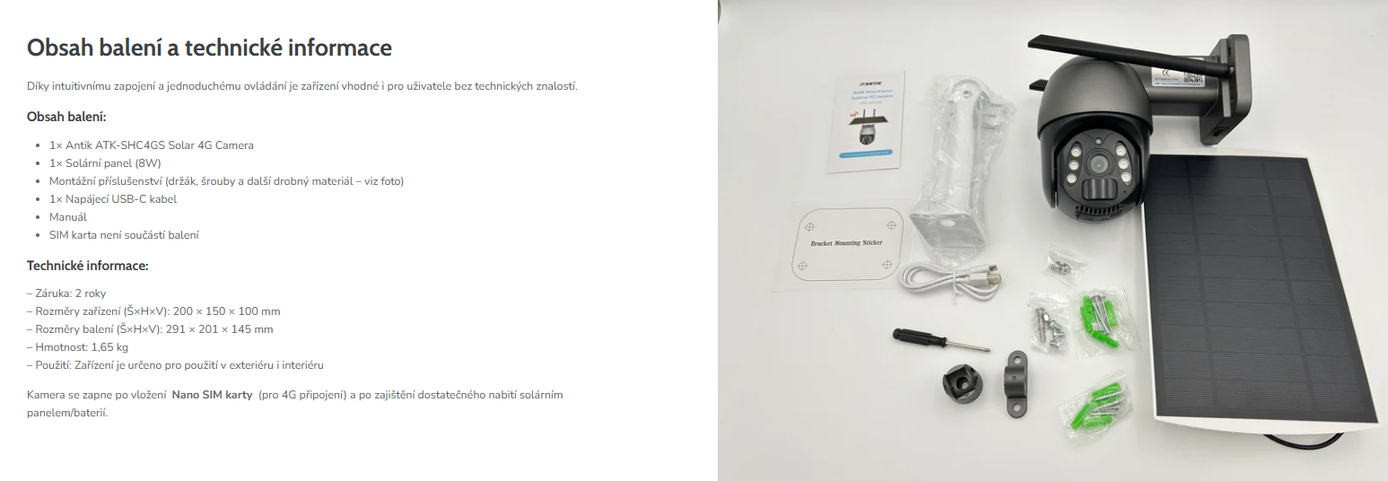 ANTIK SmartHome 4G Solární Kamera