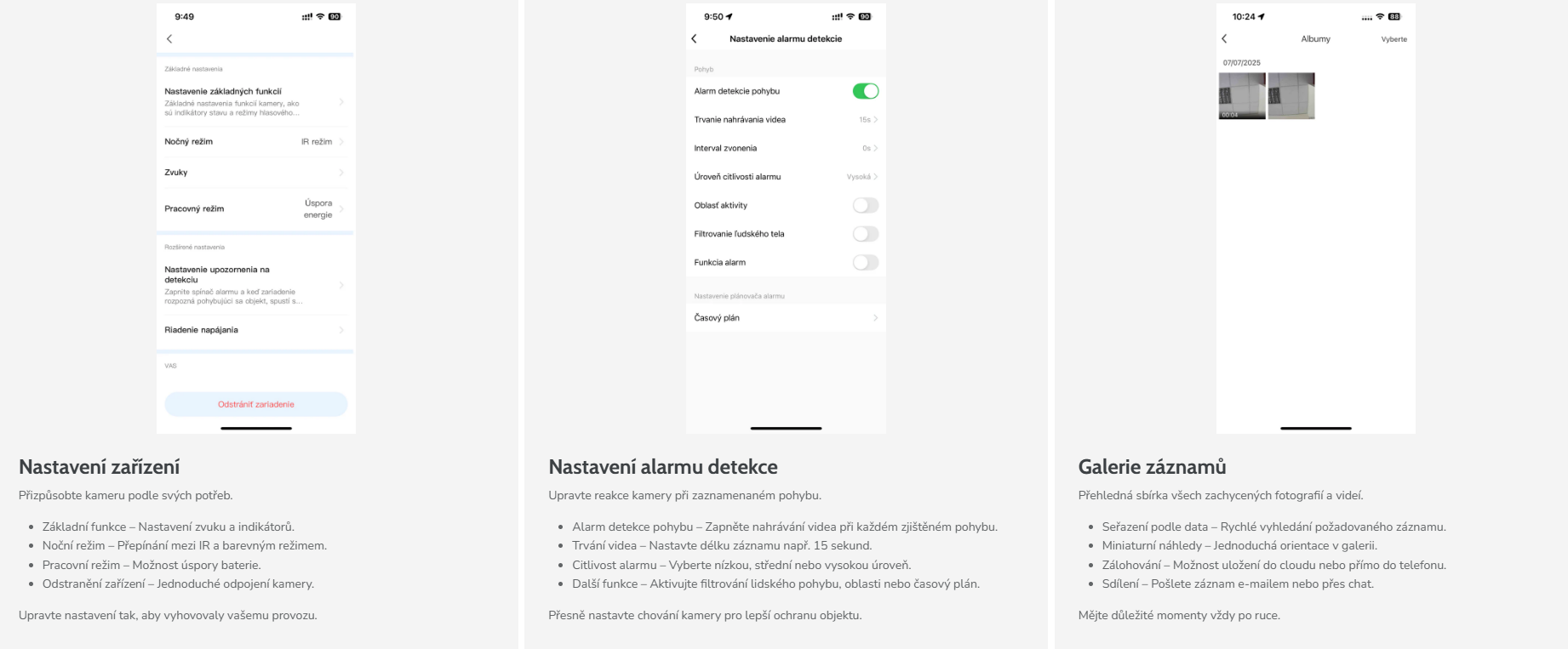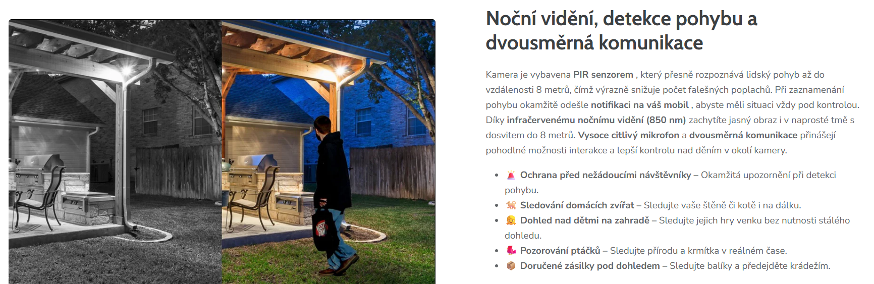 Noční vidění, detekce pohybu a dvousměrná komunikace