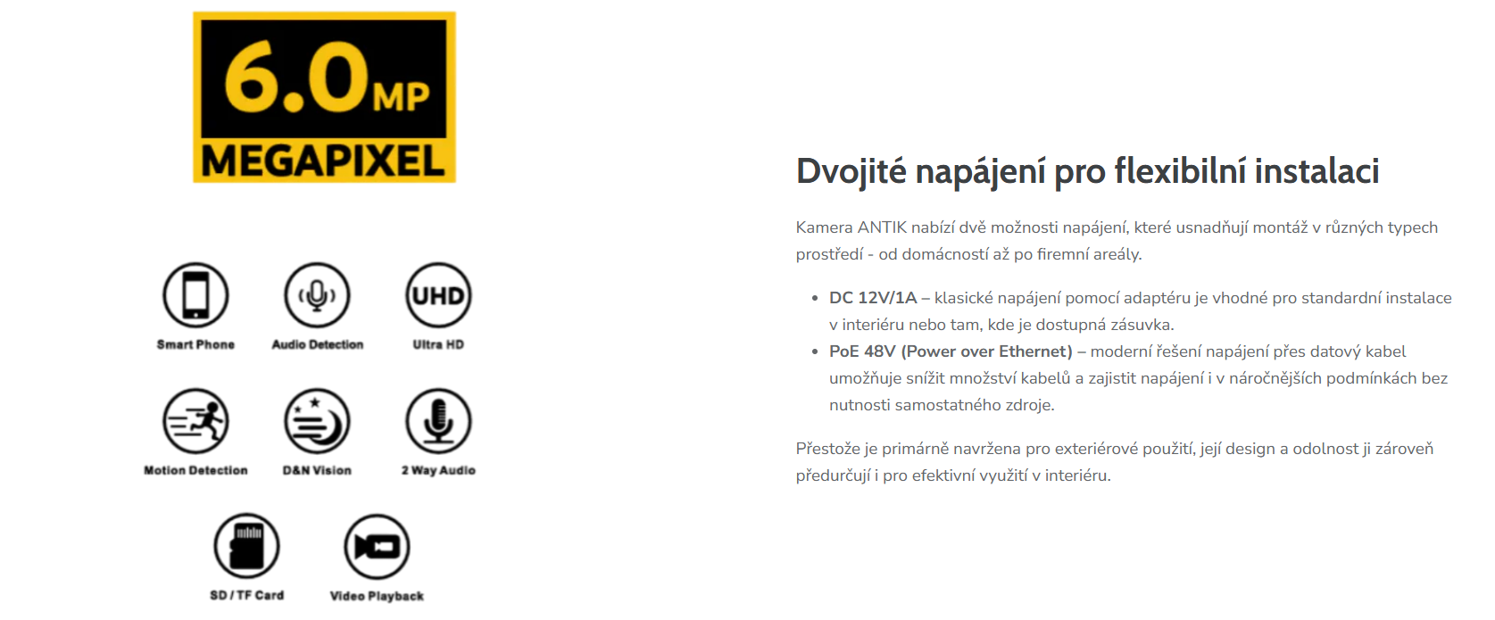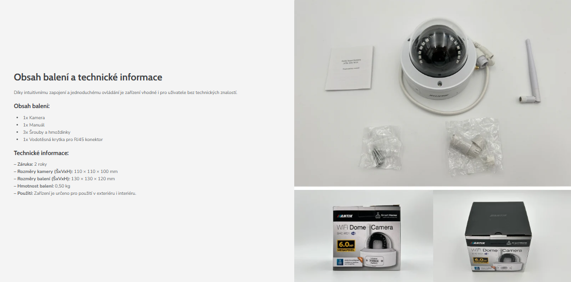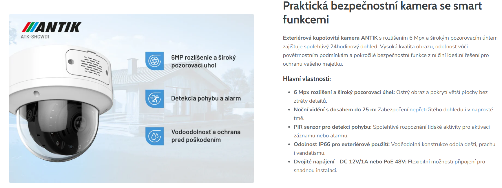ANTIK Venkovní Kupolová kamera 6.0 MP s WiFi
