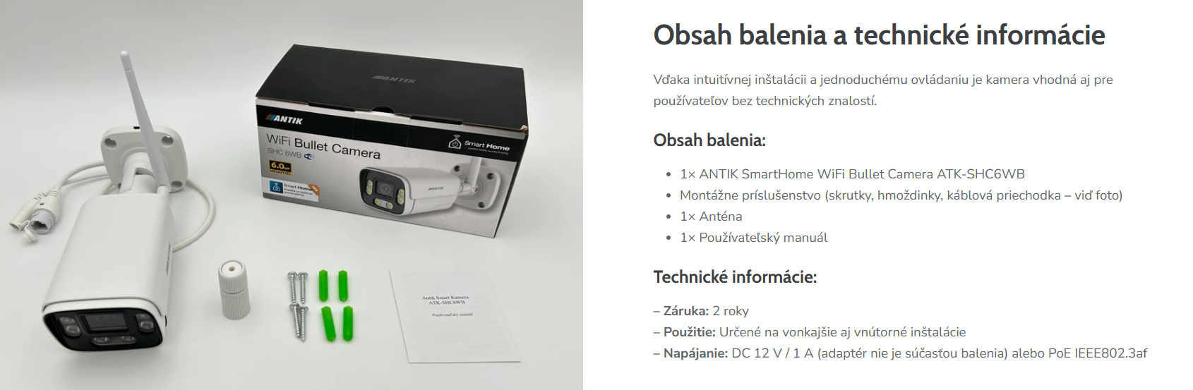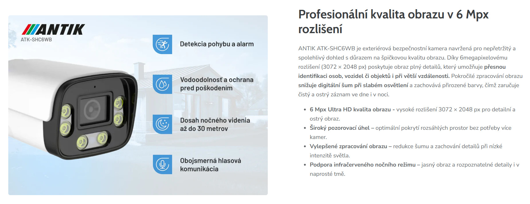 ANTIK Venkovní WiFi kamera 6.0 MP, design bullet