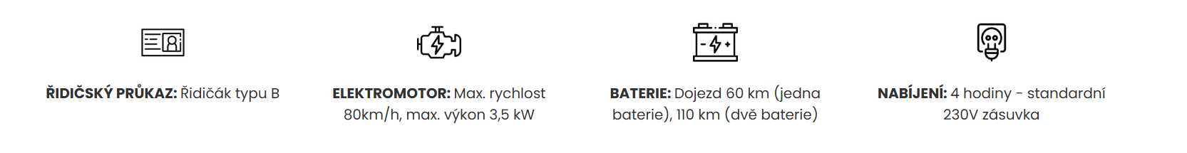 Dojezd s 1 betérií: 60 km (55 km podle WMTC Stage 3*)