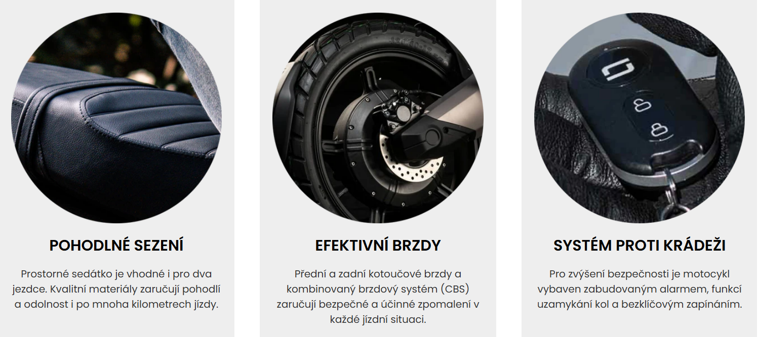 Bezpečnost: Bezklíčové zapínání, sledování v aplikaci, alarm a blokování kol
