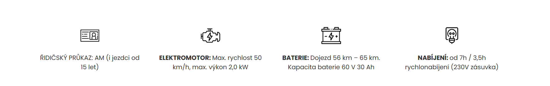 Kategorie vozidla/homologizace: L1e-B (srovnatelné s 50 ccm)