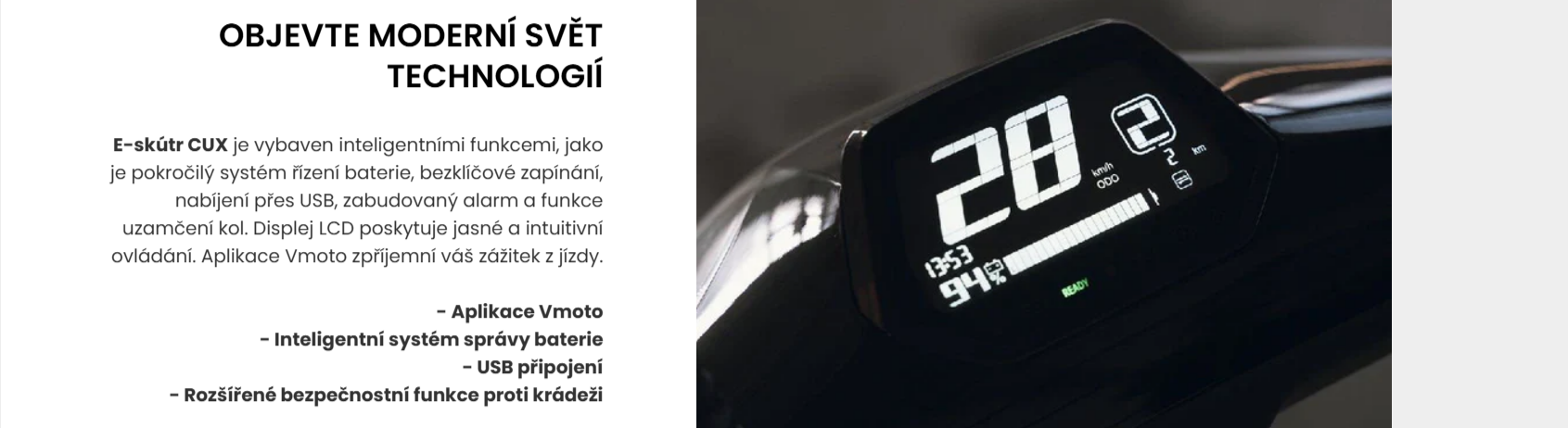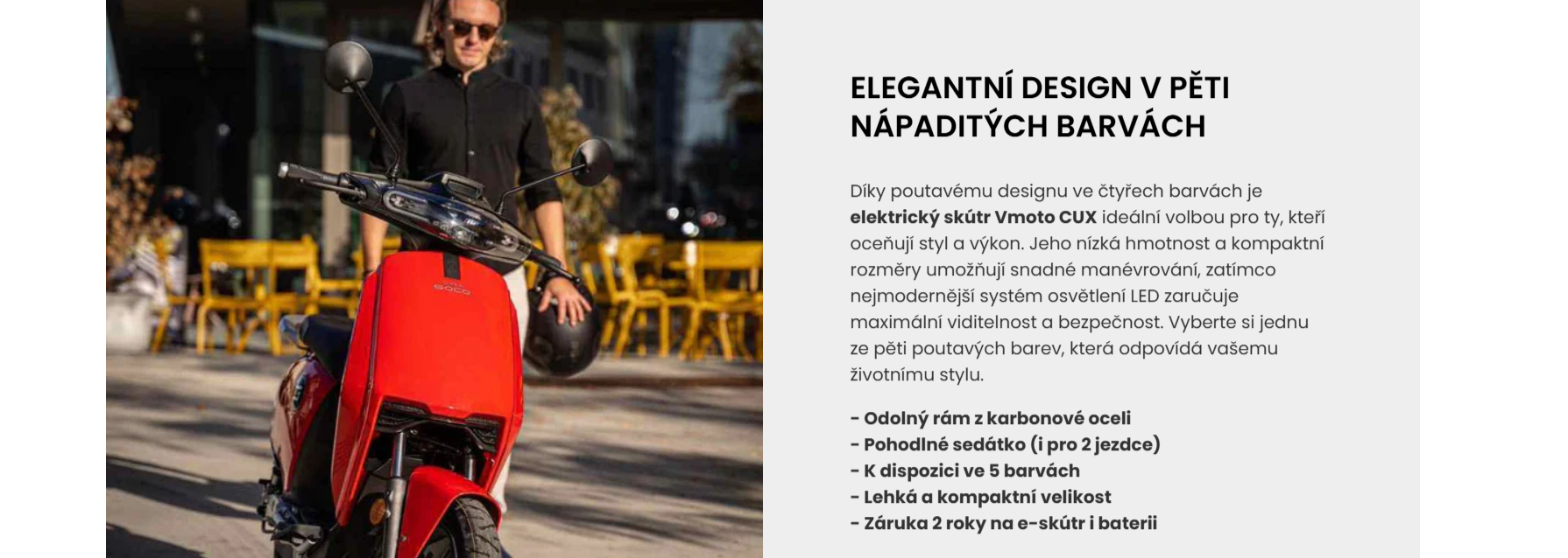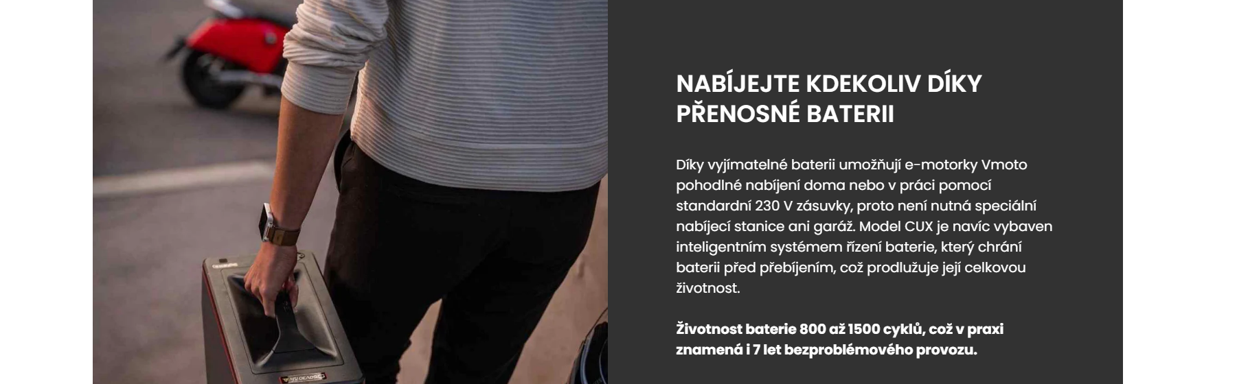 Záruka: 2 roky na motorku i baterii (800 nabíjecích cyklů). Pro dodržení záruky je třeba absolvovat pravidelné servisní prohlídky u našich autorizovaných prodejců. 2 roky předplatného služby Vmoto app. Po tomto období je možné předplatné prodloužit přímo v aplikaci.